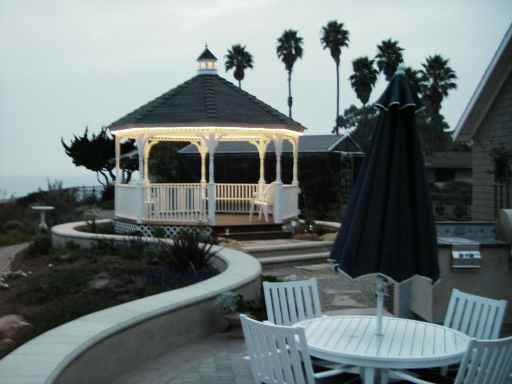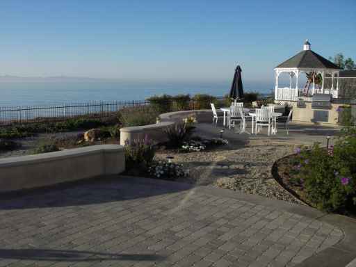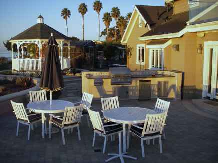 From the Master Patio, stroll along the path to the seat-wall flanked Main Patio.   Its BBQ counter features all stainless steel BBQ, 2-purner gas stove top, refrigerator, and deep sink for icing beverages.  There's room to entertain friends in a beautiful setting that tops the best commercial venues Santa Barbara offers.  And that's saying a lot.
