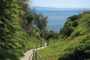 The balcony with its clear glass and stainless steel railing offer magnificent views of the Santa Barbara Channel Islands, white water beaches and viewing the Sea Lions that sun themselves on the rocks below.