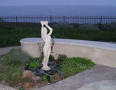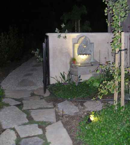 Front Patio and Fountains: Enjoy high fidelity stereo music in the romantic front patio off the master suite through the Library. This secluded, tree covered patio with its colorful landscaping and seat-wall is great for morning coffee with the newspaper or evening relaxing.